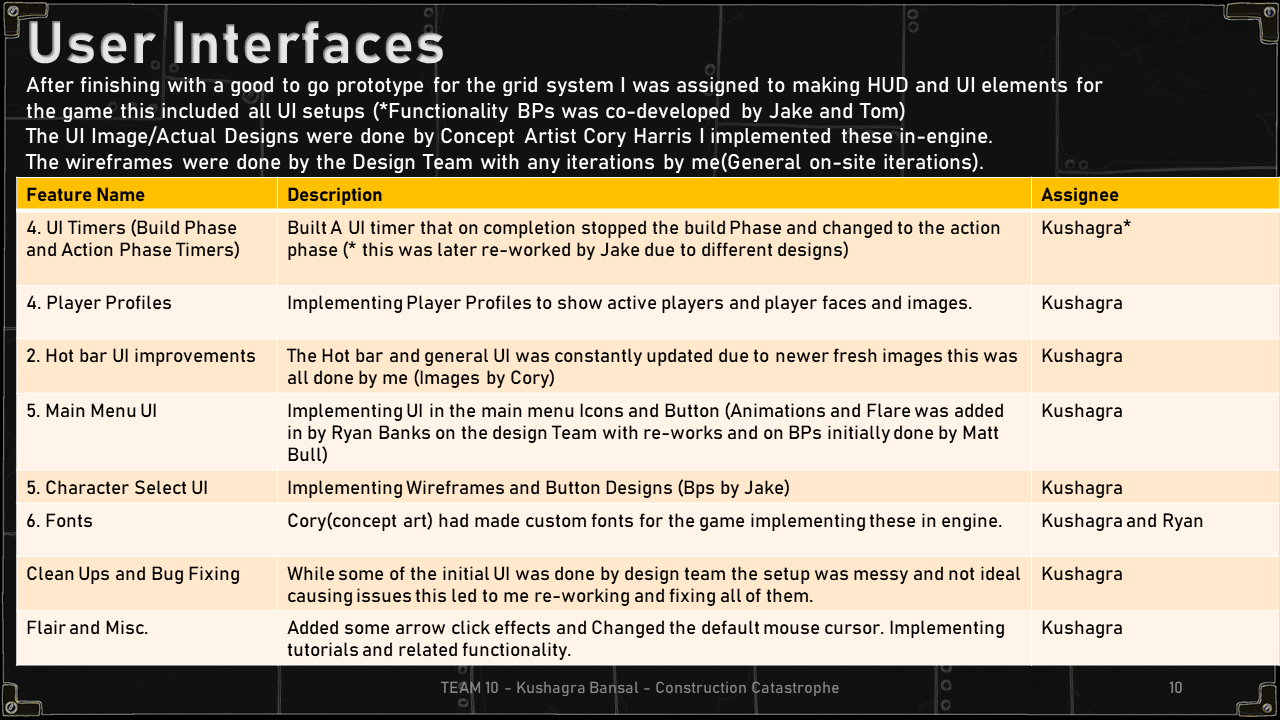 The below slides show a brief overview of all the work done during the 6 week collaboration. This included Game Design and Technical Design.