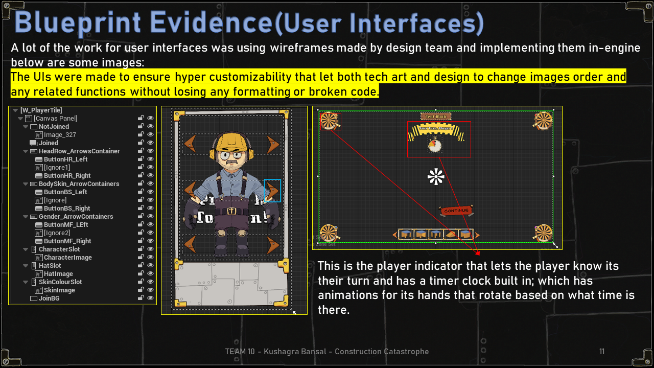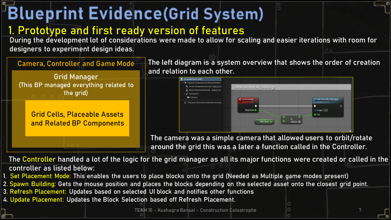 As part of the Tech Team I was assigned to building various elements of the project; this included prototyping mechanics, implementing User Interfaces and team collaboration (keeping teammates updated) the below section will cover in detail the various challenges and solutions to some of these implemented system.